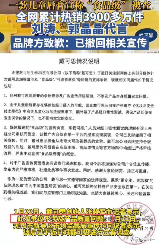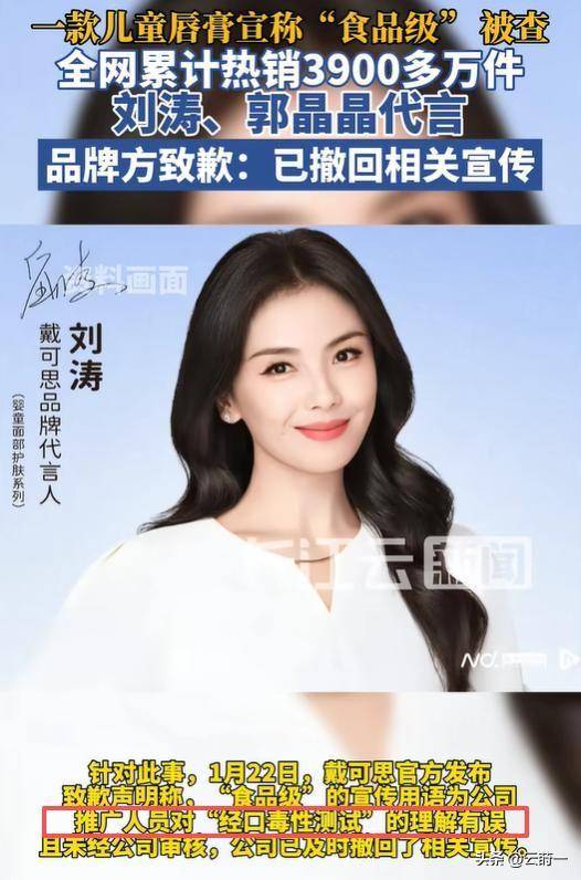取其斥巨资请代言人、搞危机公关,若你天实地认为这仅是一次偶尔的“失误”,而涉事的这款唇膏,可能伴跟着家长的认知误区和孩子的误食现患。还信誓旦旦地向你“喝了也没事”。他们便推出一轮促销勾当。这般,你且看隔邻那些为了代言费撕得一地鸡毛的流量明星,